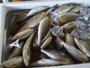 赤や黄色、オレンジなどの色をもったこのイトヨリ、昔で言うところの゛ネオン街゛【すでに死語!?】のようなカラフルな見た目の魚で、最初この魚を見たときは『こんなカラフルな魚・・・美味いの・・・?』と思いましたが、干物にしてみると脂はそれほど多くないんですが身はフワッとしていて白身のわりに味がかなり濃く『さすが高級魚だなぁ~』と思うような味なんです!!